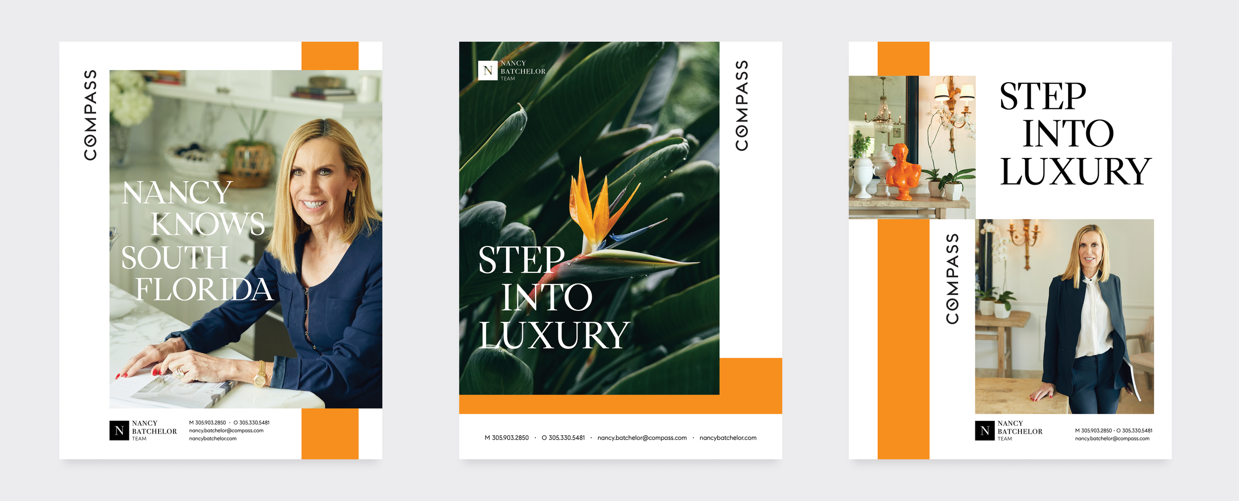 As a designer on the In-House national design team, I led multiple branding projects for top-tier agents and multi-million-dollar properties, collaborating with a small team of designers and stakeholders to deliver high-quality visual and conceptual work.